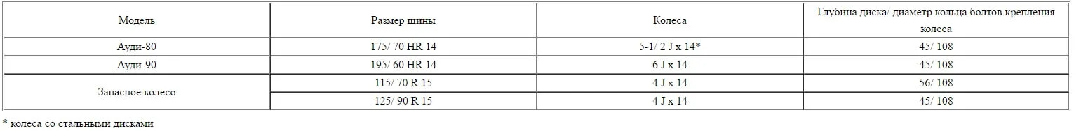 Разболтовка Ауди 80, размера ступичного отверстия, вылет дисков