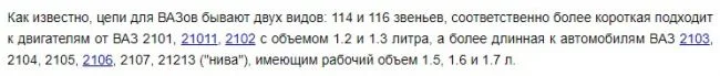 Сколько звеньев должно быть на цепи ВАЗ 2101?