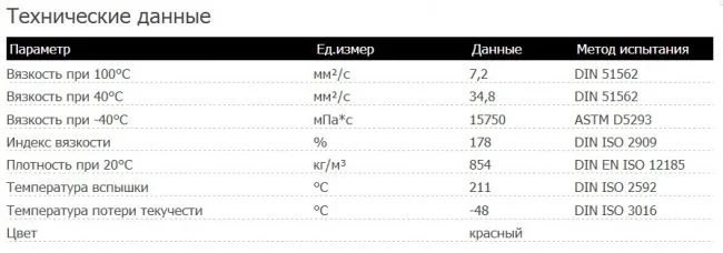 Её делают на базе своего масла Yubase. Характеристики приведены ниже в таблице.
