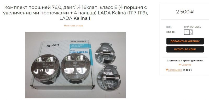 Какие поршни выбрать без втыковые 111840 Калина 2010г 1.4?