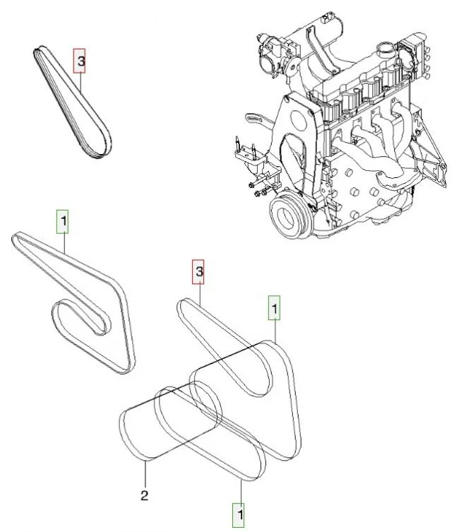 Ремень под №3, оригинал General Motors 96239408 (артикул заменен на 25183061).