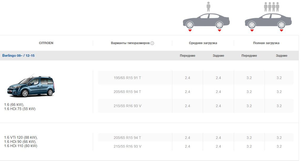 Каким должно быть давление в шинах Ситроен Берлинго 2?