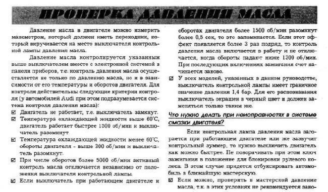 Какое давление масла в Ауди 100 С4?