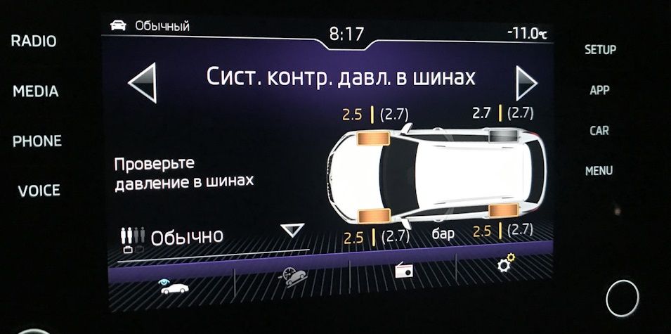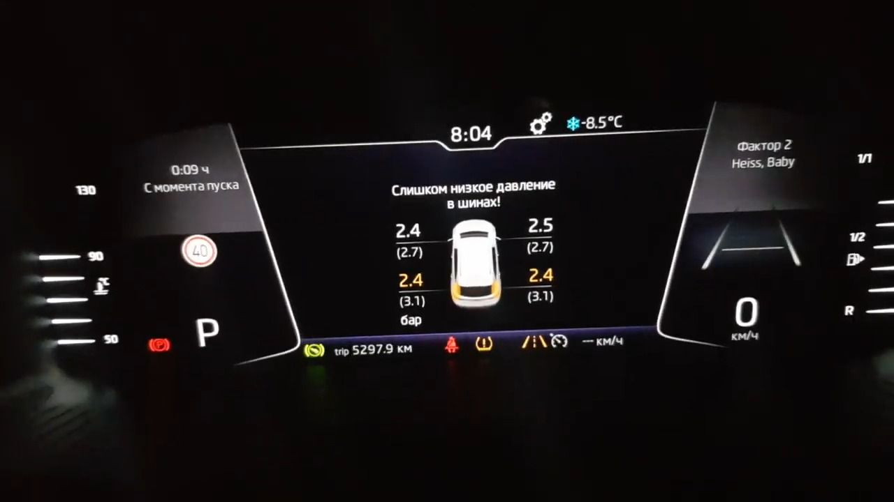 Какое должно быть давление в шинах Шкоды Кодиак? Выскочило уведомление об ошибке, что давление упало. Теперь интересно, каким оно должно быть, в частности на шинах 18 радиуса?