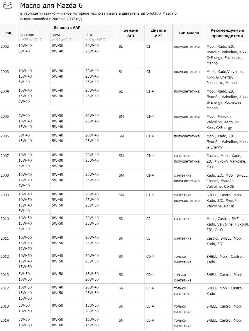 Подскажите по авто 2006 года выпуска, Mazda 6, какое масло лить в двигатель? Спасибо.