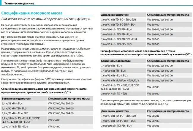 Какое масло залить в двигатель Шкода Октавия А5?