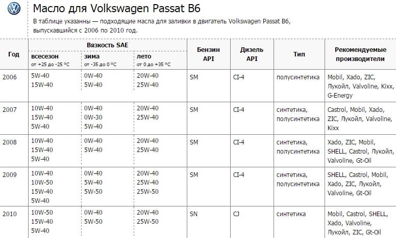Какое масло залить в Пассат B6?
