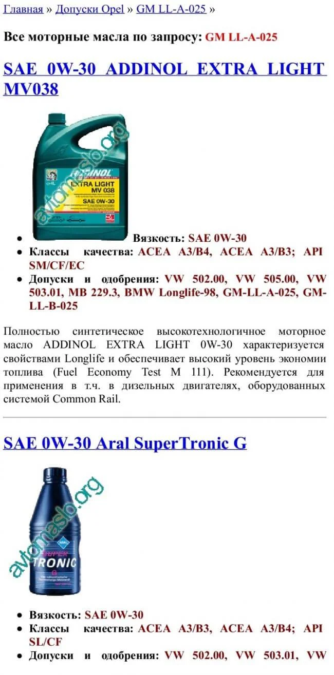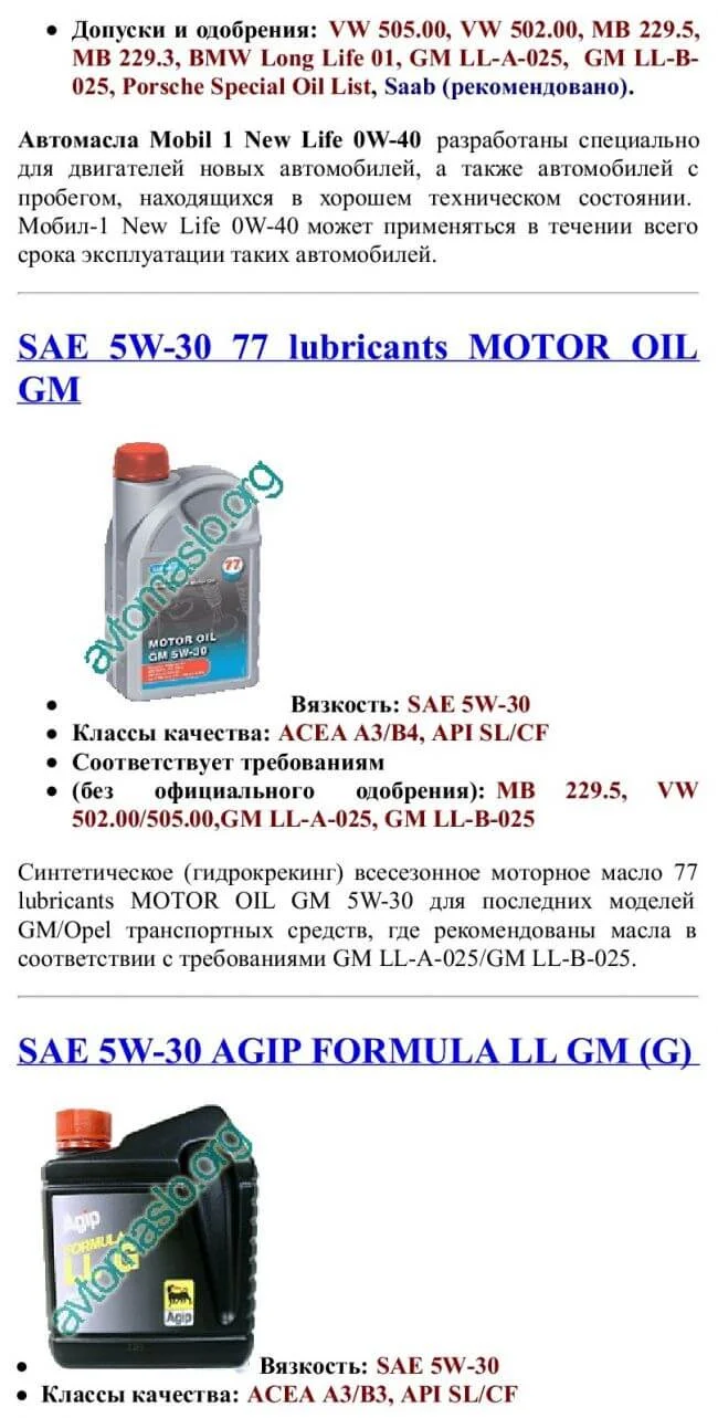 Спецификация моторного масла GM-LL-A-025