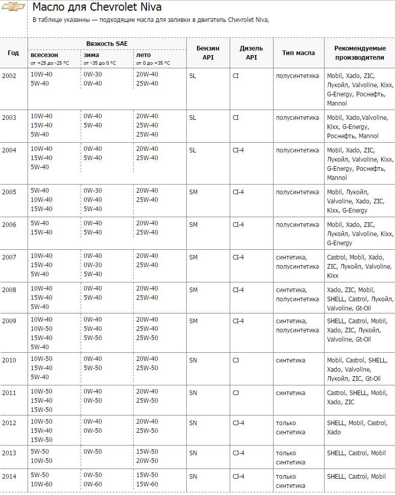 Для Chevrolet Niva, какое масло лучше заливать в двигатель?