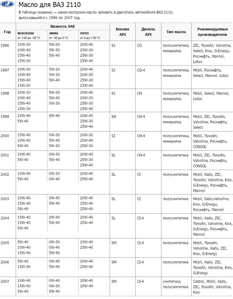 Какое масло заливать на ВАЗ 2110?