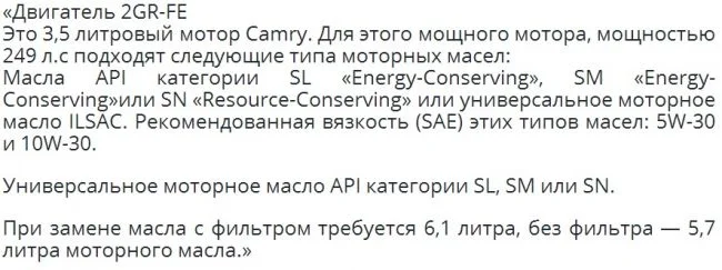 Какое масло заливать в двигатель Тойота Камри V50 3.5л?