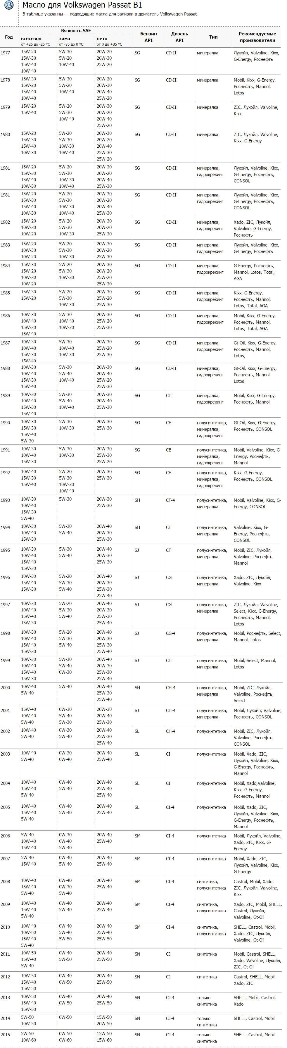 Какое масло заливать в Фольксваген Пассат?