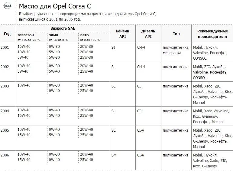 Исходя из этого можно выбрать масло для двигателя Опель Корса С