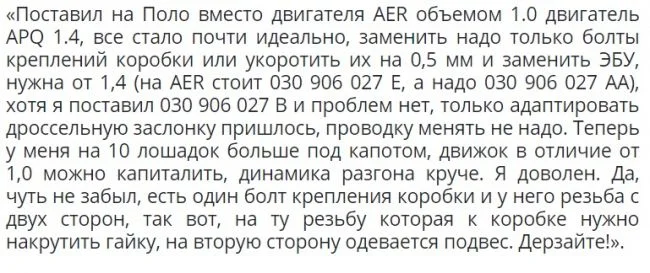 Подойдёт ли двигатель AUA на Фольксваген Поло Вариант