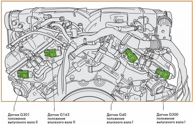 Какой из датчиков распредвала G 300 из 4-х в Ауди А6 Ц6?