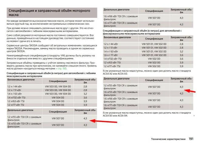 Здравствуйте. Прикладываю регламент ТО на данный автомобиль, только нет разделения по двигателям. По регламенту моторное масло нужно менять каждые 15 000 км пробега, по факту, лучше менять его чаще, например каждые 10 000 км пробега. Еще на щитке приборов может высветится гаечный ключ и текст Service, это значит, что наступил срок технического обслуживания (замены моторного масла). Для замены требуется 4,3 литра моторного масла спецификации VW 507 00.