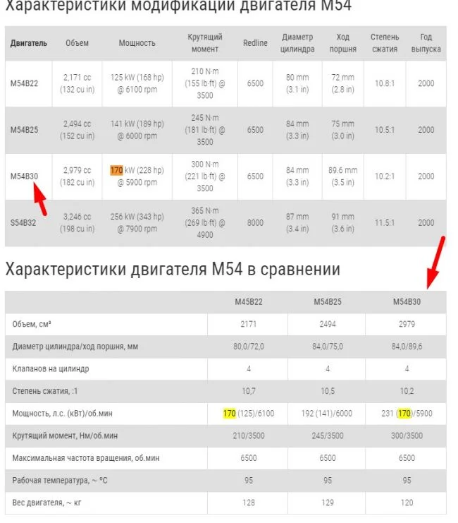 Двигатель M54, 3.0 литра, 231 л.с.