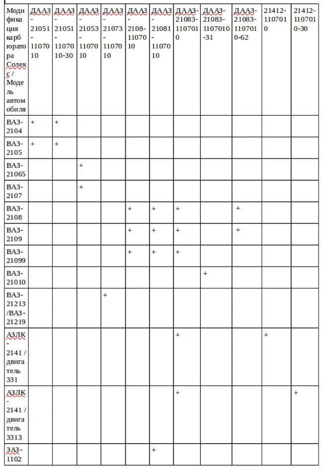 ДААЗ-21081-1107010 устанавливался на двигатели объемом 1.1 литра автомобилей ВАЗ-21081, 21091, ЗАЗ-1102 «Таврия».