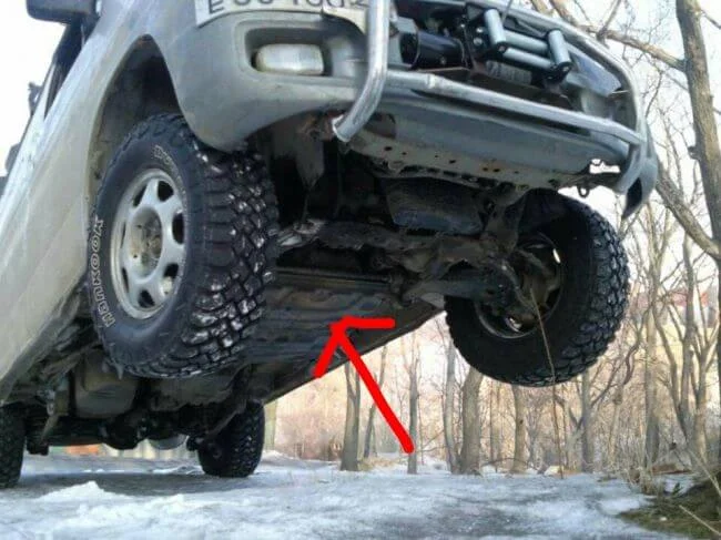 На этом автомобиле передний карданный вал состоит из двух валов, и закреплён ещё к кузову через подвесной подшипник.
