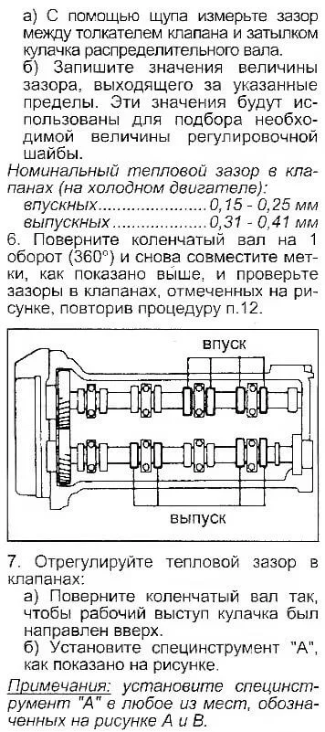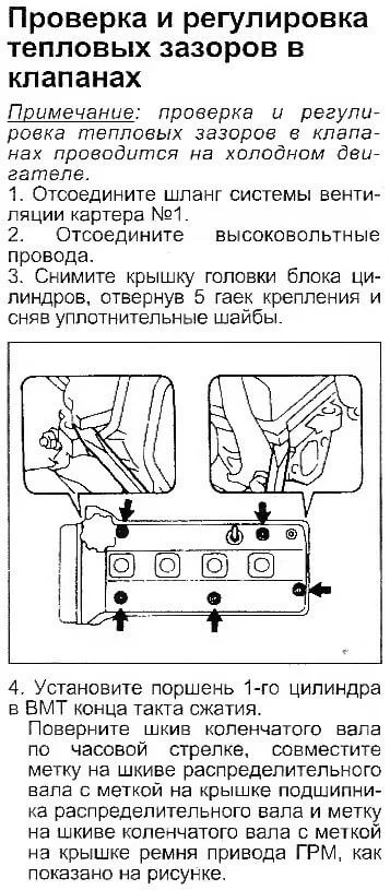 Ниже даётся процедура регулировки клапанов бензиновых двигателей 4E-FE, 5E-FE, 5E-FHE.