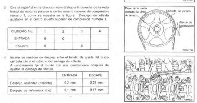 Прикладываю данные на двигатель SOHC, руководство по ремонту есть тут. Есть еще данные такие, зазор в клапанном приводе — впускной клапан 0,20 мм, зазор в клапанном приводе — выпускной клапан 0,25 мм, посмотрите данные на наклейке на капоте.