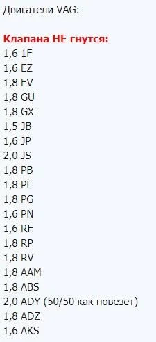 А модель какая? Например на 1,6 1F, 1,6 ЕZ, 1,6 JP, 1,6 PN, 1,6 RF, 1,6 AKS не гнет. Почитайте по ссылке. Выставьте метки и вручную проверните коленвал, если ничего не задевает, далее проверяйте компрессию, если она в норме, то клапана не загнуло.