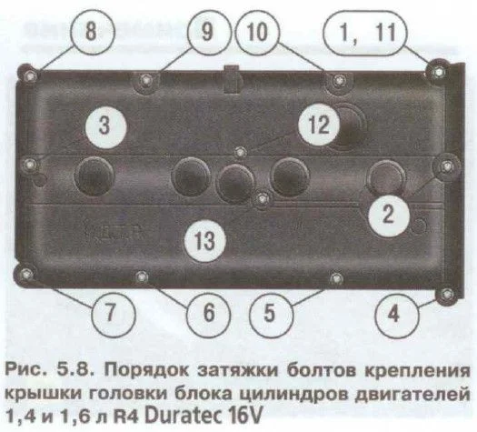 Какой порядок затяжки болтов клапанной крышки Форд Фокус 2?