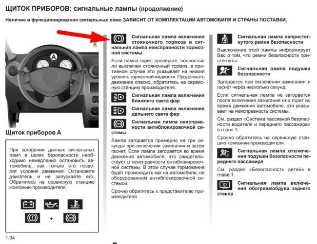 Загорается индикатор тормозных колодок в Дачия Логан