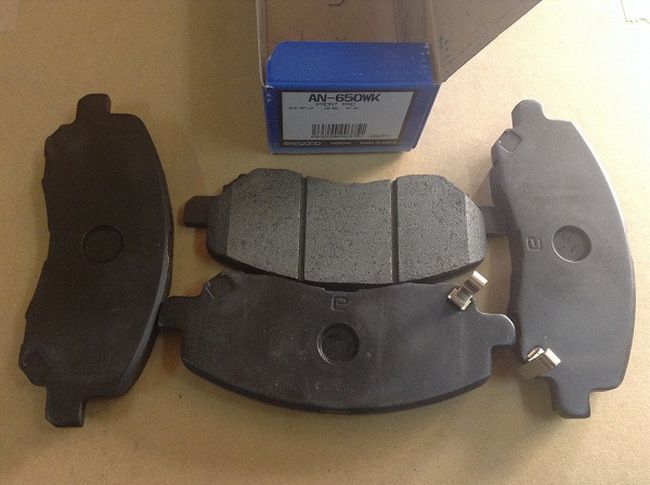 Есть несколько поставщиков оригинальных колодок без какой-либо зависимости от силового агрегата или года выпуска. Первые на тормозной системе Akebono с артикулами AN-650WK с вертикальными пропилами, такие могут устанавливаться с завода.