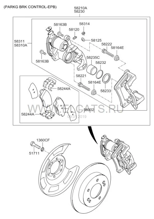 Если электро ручник (на кнопку включается), то задние колодки оригинал Hyundai/Kia 58302-A6A20, хороший аналог Sangsin SP 1401 (или Sangsin SP 1239).