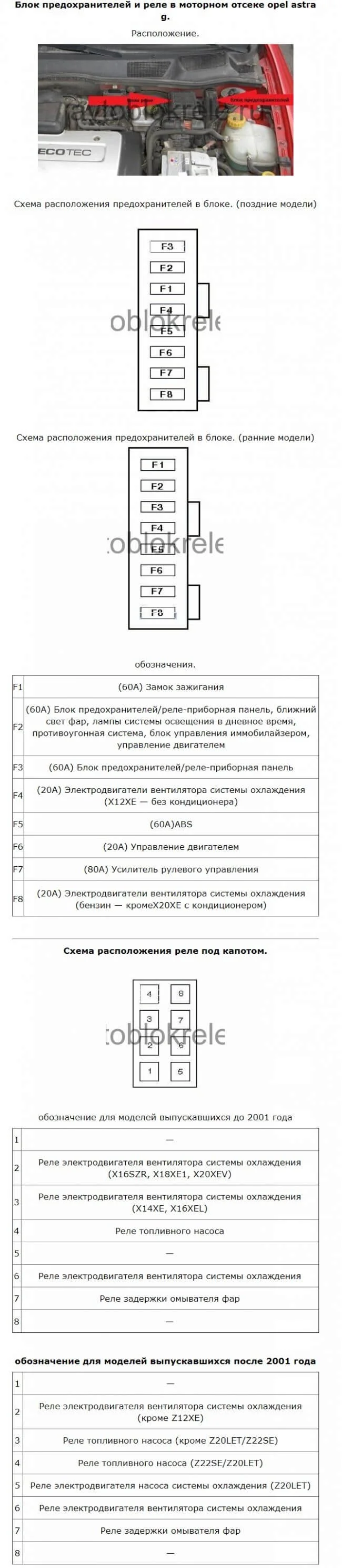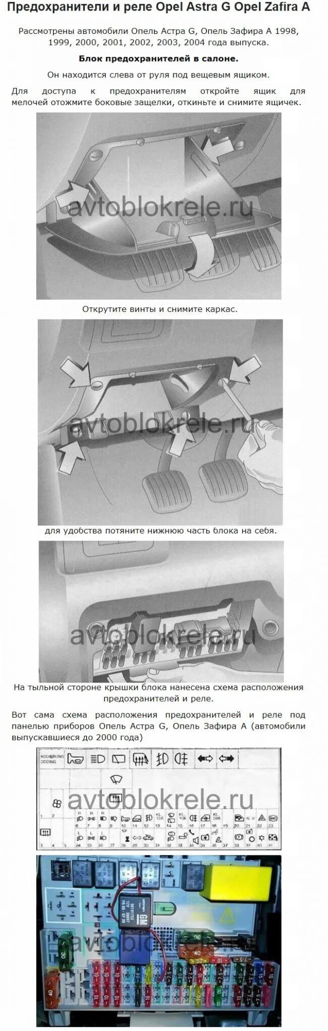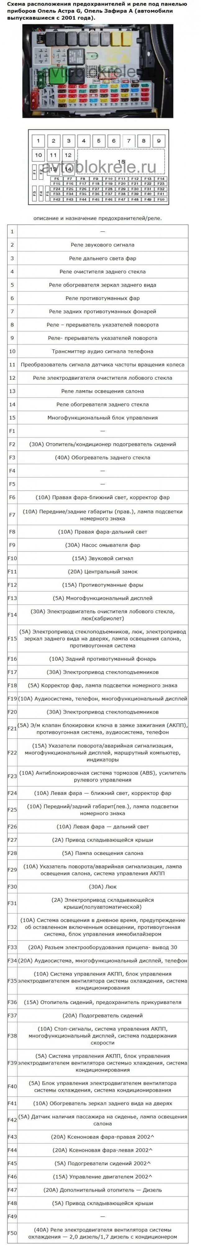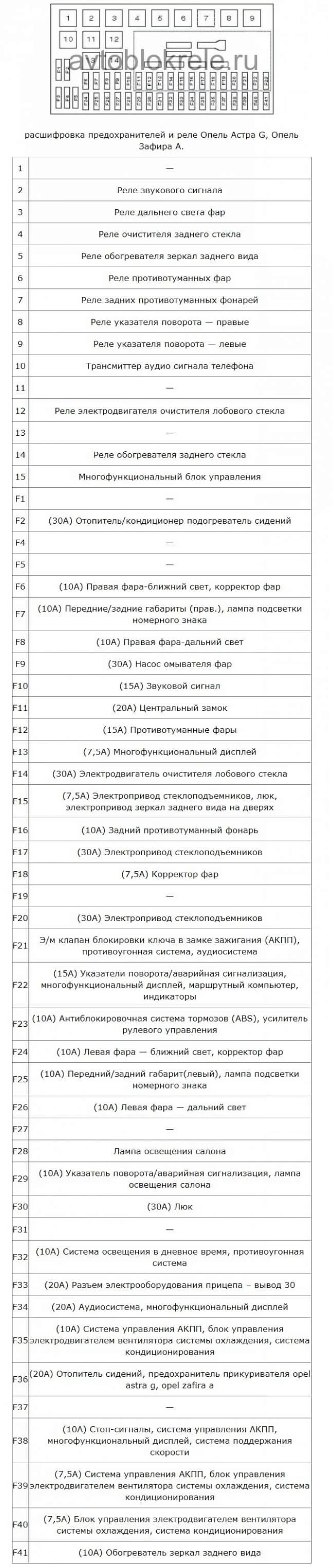 Где находится предохранитель и реле кондиционера в Опель Астра Джи?