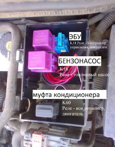 По поводу самих реле, то есть реле кондиционера и реле муфты. Реле муфты установлено под капотом в блоке, возле лобового стекла в маленькой черной коробке.