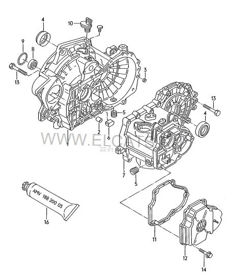 Вот на механической 5-ти ступенчатой коробке «Seat Toledo», под номером 5 внизу сливная, сбоку заливная пробка. Там где заливается тут же и проверяется уровень( до верхней кромки отверстия должен быть уровень масла).