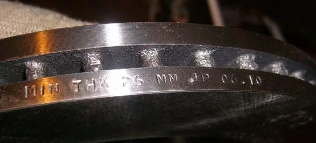 Если диски сделаны по стандарту, осмотрите сам диск (возможно на торце), должна быть указана исходная толщина и минимально допустимая или только минимально допустимая