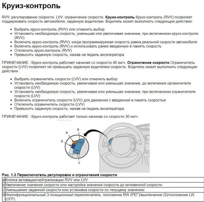 Круиз контроль не реагирует на клавиши в Ситроен С4