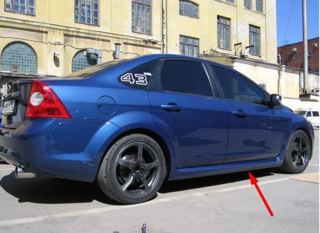 Пластиковые пороги вдоль кузова, снизу, по длине кузова. Они под прямым углом снизу и с боку. В магазине могут не то посоветовать чем приклеить!!!