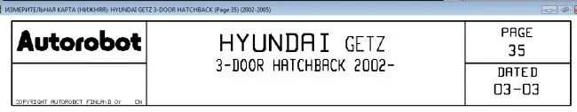Контрольные размеры кузова Хендай Гетц 3-х дверный хетчбек 2002 г.