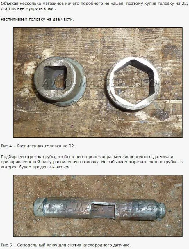 Но часто лямбда-зонд прикипает «намертво». В таком случае предлагаются спецключи (головки) или приходится делать самодельный ключ.