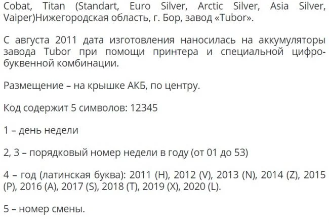 Как читать маркировку АКБ Титан Силвер Азия?