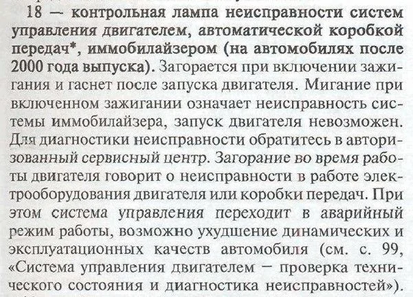 Опель Зафира А, 2.0, дизель, 2001 год. При движении засвечивается машинка с ключиком, то светиться то гаснет. Что может быть?