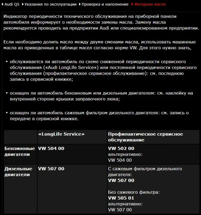 Сколько масла в двигателе Ауди Ку5?