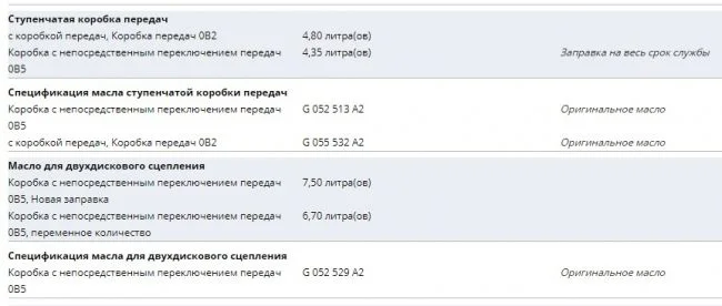 В кпп 0B2 заливается 4,8 литра масла G 055 532 A2.