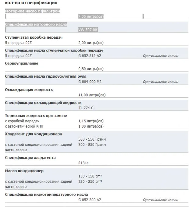 Моторное масло с фильтром 7,00 литра(ов)Спецификация моторного масла VW 507 00