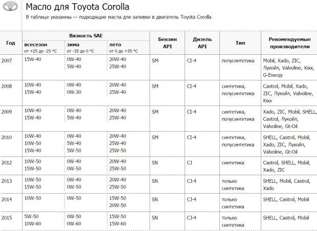 Можно ли применять масло 0w30 или 5W30 в ДВС Тойота Королла?