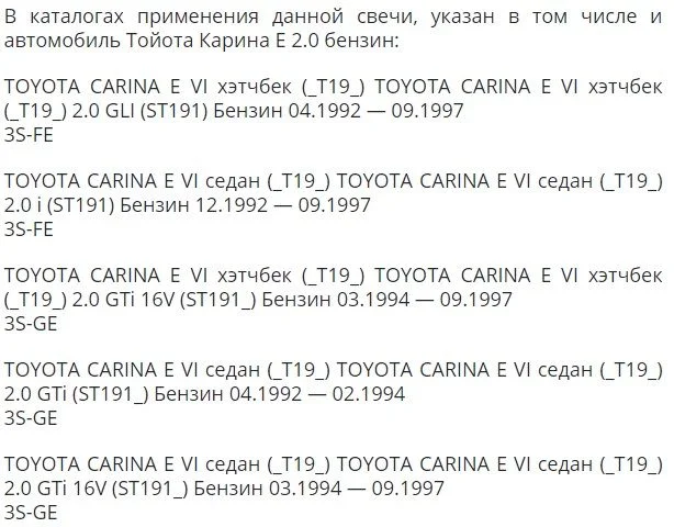 Подходят ли свечи Denso Iridium TT IK20TT на Тойота Карина Е 2.0 бензин?