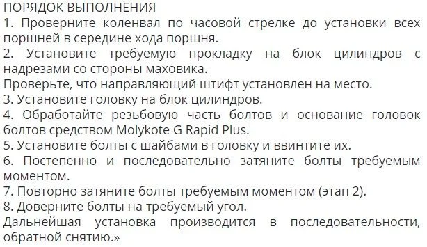 Последовательность затягивания болтов крепления головки блока цилиндров