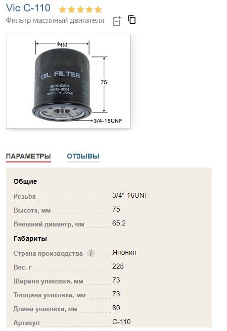Масляный фильтр VIC C110 подходит ли для Тойота Карина 6 3S-FE