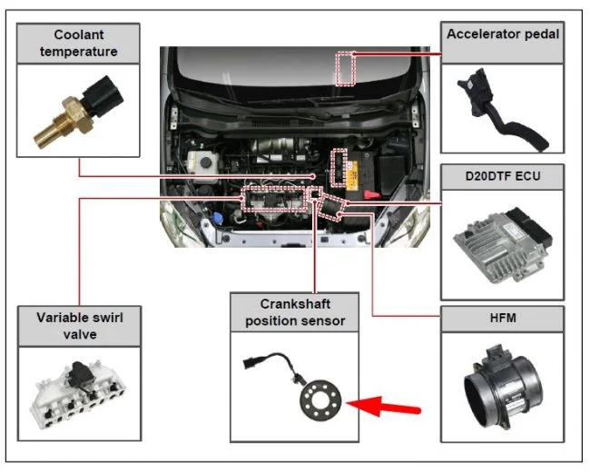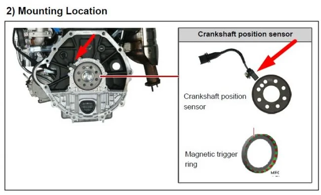 Где расположен датчик коленвала СсангЙонг Актион 2?