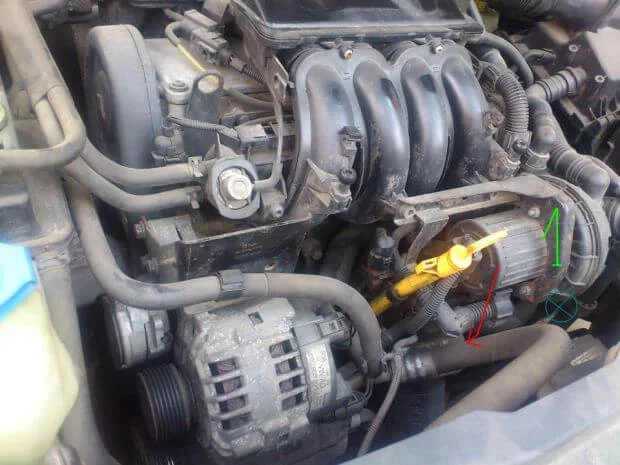 Подскажите пожалуйста место установки датчика коленчатого вала на Гольф 4, двигатель 1.4, AHW, а также, какого цвета у него разъём?