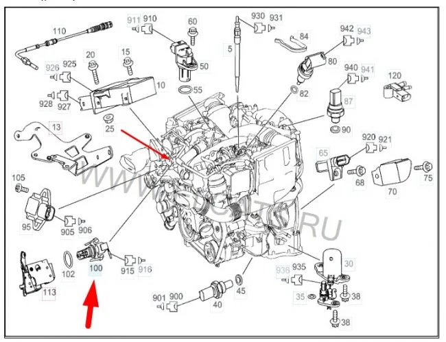 Где стоит датчик температуры охлаждающей жидкости Мерседес В211 ОМ646?